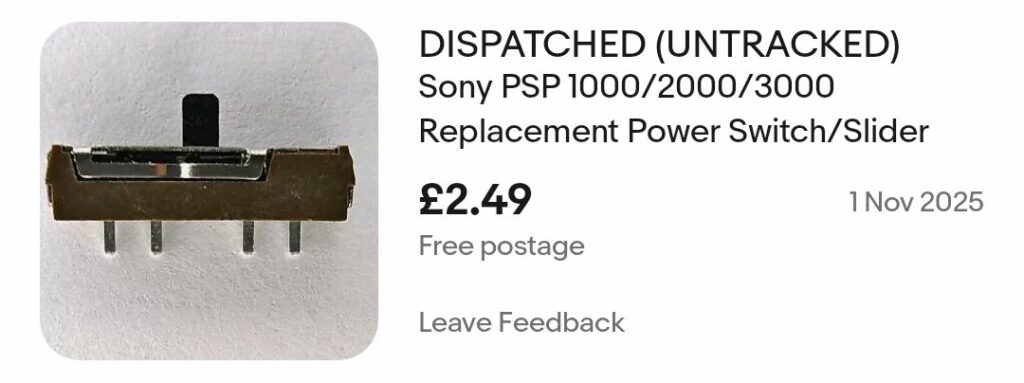 Recently I had to get a replacement power switch for a LifeDrive repair. A friend identified that the part number was JSM07011SAQNL, but we could only find fairly expensive parts for sale on the far side of the world. While rummaging around, I saw a picture of the power switch used on the Sony PSP (variously 1000, 2000 & 3000) and it looked suspiciously similar and I could get it on local eBay, for much less money. I decided to take the chance.